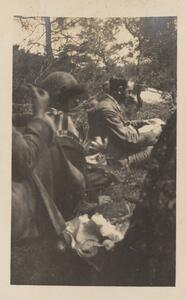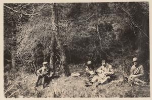 Depicts Francis B. Welch, Vivian Whitfield, Mr. C. Hignett and Elaine Tankard at Stamata Gorge, eating breakfast. No caption.