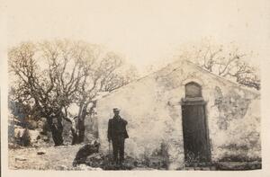 Depicts some old stone monastery of Daou Pendeli. Handwritten caption “Daou. 3 V 25”.