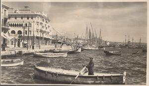 Depicts the harbour with the boats, and part of the buildings of the city, probably Thessaloniki. No caption. At the bottom of the page is written “Salonica” and under this photograph is written “Thessaloniki”, with two different handwritings.
