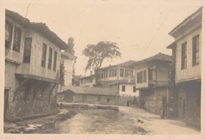 Depicts the street and houses of the town of Edessa, before known as Vodina, or Vodhena. No caption.