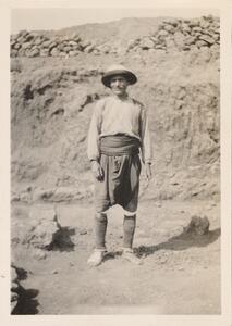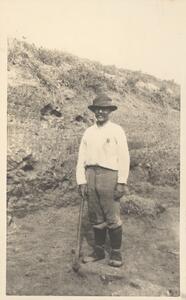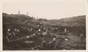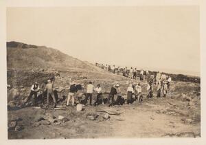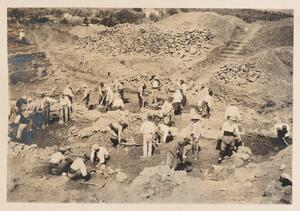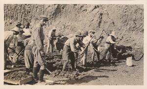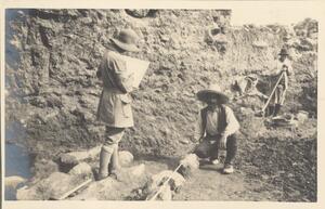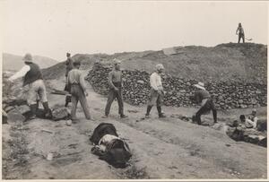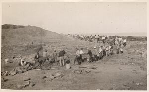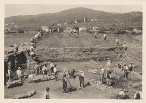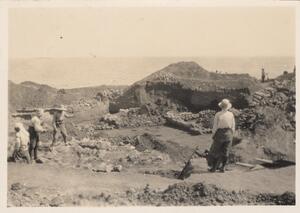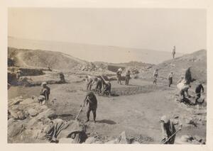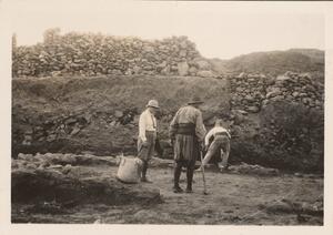 Depicts the workmen at the excavation of Thermi. Handwritten caption “"Passa"”.