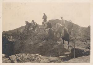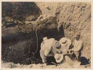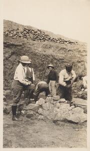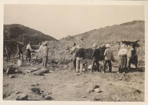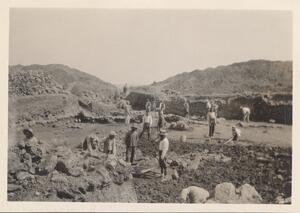 Depicts some of the workmen at the excavation of Thermi. No caption.