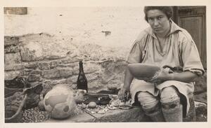 Depicts her cleaning or restoring sherds. No caption, but Helen Waterhouse wrote “Nina” under her.