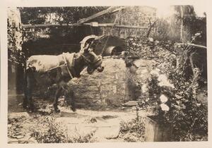 Depicts the animal grinding in a mill. No caption.
