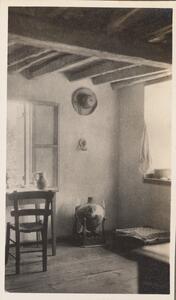Depicts the room of Nine at the house where they stayed at Thermi (Lesvos). Handwritten caption “Nine’s room. Alias the museum.”