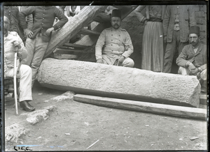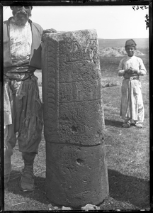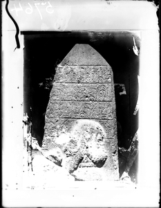 Part of a group of images from the 1891 travels of Hogarth and Munro in Anatolia as described in Hogarth's 1896 book, A Wandering Scholar in the Levant. The original description in the SPHS register reads: "Izgin obelisk: (Hittite) photographed at. Govt. buildings of Albanistan: now in Imperial Museum in Constantinople".