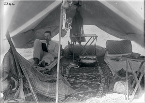 Part of a group of images from the 1891 travels of Hogarth and Munro in Anatolia as described in Hogarth's 1896 book, A Wandering Scholar in the Levant. The original description in the SPHS catalogue reads: "Explorer in quarantine".