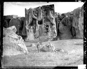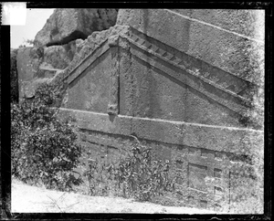Part of a group of images from the 1891 travels of Hogarth and Munro in Anatolia as described in Hogarth's 1896 book, A Wandering Scholar in the Levant. The original description in the SPHS register reads: "Ayazeen: lion tomb".