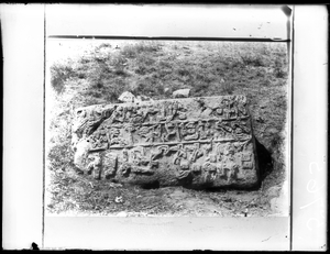 Part of a group of images from the 1891 travels of Hogarth and Munro in Anatolia as described in Hogarth's 1896 book, A Wandering Scholar in the Levant. The original description in the SPHS catalogue reads: "Asia Minor: Hittite monuments. Stone at Kolibolu Yaila".