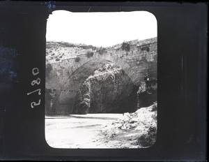 Part of a group of images from the 1894 travels of Hogarth, Yorke and others up the Euphrates as described in Hogarth's 1896 book, A Wandering Scholar in the Levant. The original description in the SPHS catalogue reads: "Asia Minor: later monuments. Roman bridge near Kiakhta".