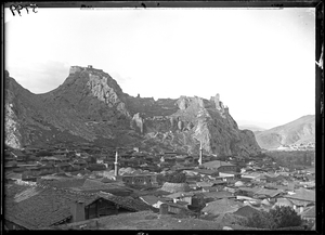 Part of a group of images from the 1891 travels of Hogarth and Munro in Anatolia as described in Hogarth's 1896 book, A Wandering Scholar in the Levant. The original description in the SPHS register reads: "Amasia: citadel, from the Turkhal road".