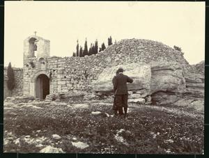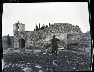Part of a group of images donated by the Argonaut Camera Club, taken on excursions and cruises in Greece and Asia Minor. The original description in the SPHS register reads: "Messene: summit of Ithome, monastery on site of temple".