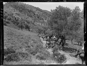Part of the collection of images of the British School at Athens excavations at Kamares Cave, Crete in 1913. The original description in the SPHS negative register reads: "Kamares cave: En route for the excavation".