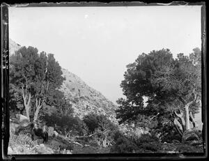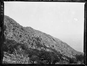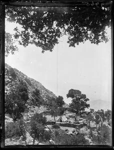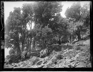 Part of the collection of images of the British School at Athens excavations at Kamares Cave, Crete in 1913. The original description in the SPHS negative register reads: "Kamares cave: woods near camp".