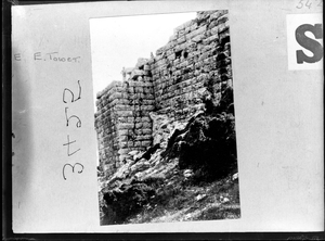 The original description in the SPHS register reads: "Mycenae: wall & towers below Lion Gate".