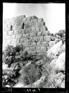 The original description in the SPHS register reads: "Mr. Atchley's numbering: 368. Aetolia, Calydon, N.W. wall and tower".
