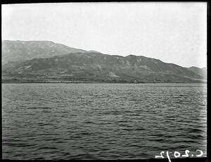 The original description in the SPHS register reads: "Mr. Atchley's numbering: without number. Addenda. Pindus, beach & firs: Samarina in background. looking NW".
