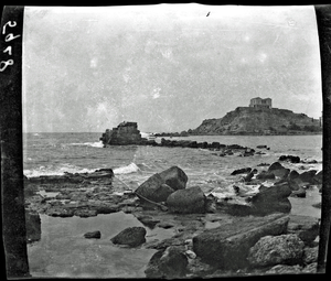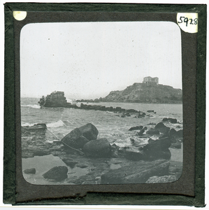 Part of a group of images donated by the Argonaut Camera Club, taken on excursions and cruises in Greece and Asia Minor. The original description in the SPHS register reads: "Athens: Acropolis . Crouching rock on N. wall (Persian ascent?)".