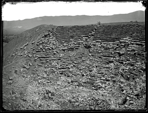 Part of a collection of images photographed by Corporal Trotman around the area of Ephesus and the Seven Cities of Asia Minor, taken between 1871-1873. The original description in the SPHS register reads: "Ephesus: Interior of Large Theatre said to accomodate 24,000 persons".