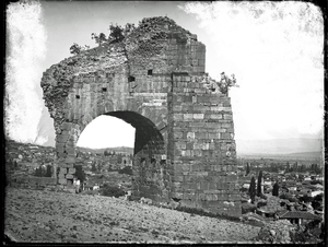 Part of a collection of images photographed by Corporal Trotman around the area of Ephesus and the Seven Cities of Asia Minor, taken between 1871-1873. The original description in the SPHS register reads: "Pergamos: from west gate". The entry has been struck out in the SPHS register, presumably deaccessioned.