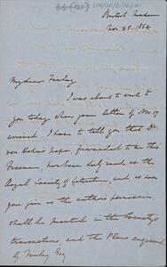 Charles Thomas Newton to George Finlay. British Museum, London, 25 November 1864. Decision of Royal Society of Literature to publish van Hahn's paper in its Transactions. Thanks George Finlay for political news.