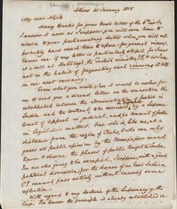 George Finlay to Alexander Finlay. Athens, 21 January 1858. George Finlay's further opinions on the rule of the law in India. A 'carbon' copy (unfinished) replying to George Finlay's of 6 January giving George Finlay's further views on administration of justice in India. Powers not based on law will result in civil rebellion, as in the case of the American colonies.