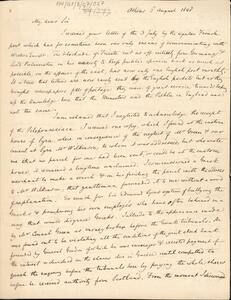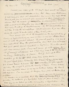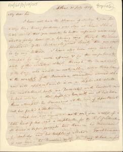 Athens, 20 October [1847]. This is a first draft of 25 and has been wrongly dated '1844'. It mentions L's Thoughts on the Degradation of Science in England, 1847, and his Peloponnesiaca, 1846.
