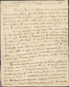 Athens, 19 March 1841. Recall of Mavrocordatos as Foreign Secretary. Unfortunate return of Tricoupi to London. Otho's machinations do not deceive Sir Edmund Lyons (unfinished).
