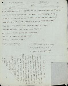 Nottingham Place, London. Athens, 18 October 1833. Details of Gropius's archaeological work on antiquities of Acropolis and old city. Ross's work in Boeotia. Present policy concerning national land. Other land at present on market. George Finlay's property in Attica. Government distribution of land to 'the Captains'. An extract (in Greek) from the Minister of Finance Mavrocordatos defining national property.