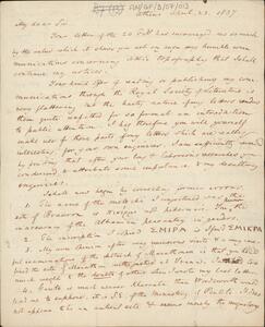 (10) George Finlay to C. Lyall, Foreign Secretary to the Geological Society, London. Athens, 25 February 1837.