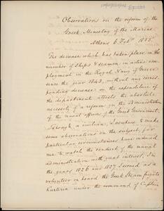 (11) Hastings to the 'Membres du Corps Executif en Gréce (sic)' . Perseverance steam vessel, Napoli de Romania, 15 September 1826.