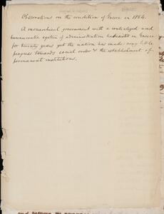 Prospects of the new Dynasty on Greece' (undated). In paper enclosure by George Finlay.