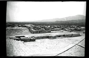 Part of a group of images from explorations and excavations on the island of Melos conducted by the British School at Athens from 1896 to 1899. The original description in the SPHS register reads: "Phylakopi: fig. 50. View of top step of Portico & Plinth of anta of Palace".