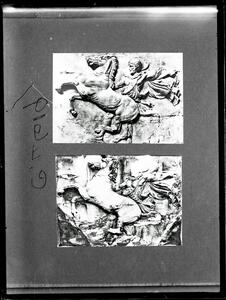 The original description in the SPHS register reads: "Slide of the frieze of the Parthenon showing above condition when the casts were made in and beneath their deteriorated condition today".