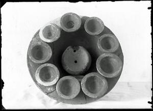 Part of a group of images from the British School at Athens excavations at Rhitsona in Boeotia in 1907 and 1908. The original description in the SPHS negative register reads: "Terra cotta from Rhitsona: cheese grater. (BSA. XIV.pl.7b)". Listed as a Colour Slide in the SPHS negative register (A series), but the negative is black and white.