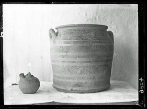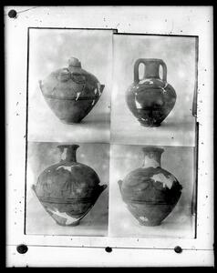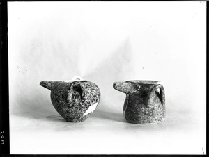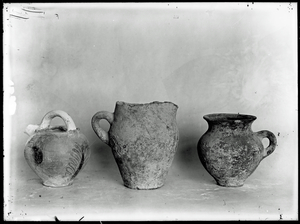 Part of a group of images from explorations and excavations on the island of Melos conducted by the British School at Athens from 1896 to 1899. The original description in the SPHS register reads: "Phylakopi pottery: Stone jugs of Kamares shape".