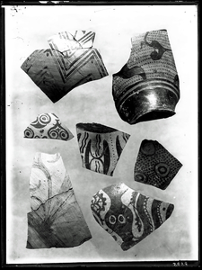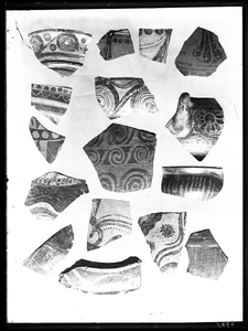 Part of a group of images from explorations and excavations on the island of Melos conducted by the British School at Athens from 1896 to 1899. The original description in the SPHS register reads: "Phylakopi pottery: Incised ware. Painted geometric. Mykenaean".