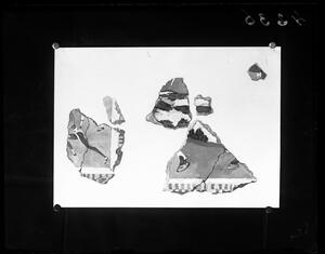 Part of a group of images from explorations and excavations on the island of Melos conducted by the British School at Athens from 1896 to 1899. The original description in the SPHS register reads: "Phylakopi pottery: painted geometric, Mykenaean sherd, pseudo Myk. Jug".