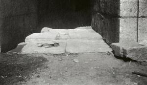 Part of a collection of images of the BSA's 1920s excavations at Mycenae. The original description in the SPHS register reads: "Mycenae: Treasury of Atreus. Threshold".