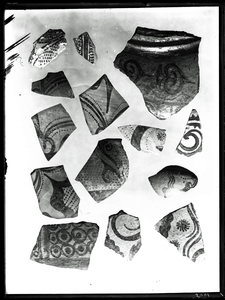 Part of a group of images from explorations and excavations on the island of Melos conducted by the British School at Athens from 1896 to 1899. The original description in the SPHS register reads: "Phylakopi pottery: finest Mykenaean or Knossos Palace style".