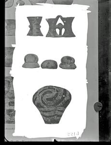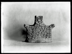 Part of a group of images from explorations and excavations on the island of Melos conducted by the British School at Athens from 1896 to 1899. The original description in the SPHS register reads: "Phylakopi pottery: unpainted clay idol? horns of consecration?".