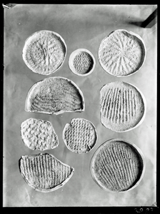 Part of a group of images from explorations and excavations on the island of Melos conducted by the British School at Athens from 1896 to 1899. The original description in the SPHS register reads: "Phylakopi pottery: impress of plaited rush mats on which early pots built up".
