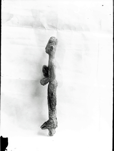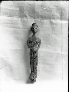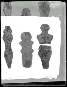 Part of a group of images from explorations and excavations on the island of Melos conducted by the British School at Athens from 1896 to 1899. The original description in the SPHS register reads: "Bronze statuette: Phylakopi (BSA III)".