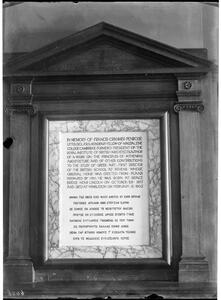 One of a group of images relating to the British School at Athens: buildings and setting, scholars and students. The original description in the SPHS register reads: "B.S.A. Penrose Memorial Tablet".