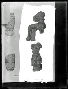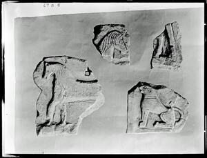 Part of the collection of images, 1906-1910, of the British School at Athens excavations at Sparta, Laconia. The original description in the SPHS register reads: "Sparta: T.C. reliefs in limestone, figures of animals".