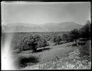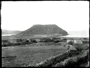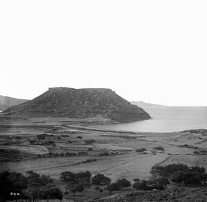 Part of a group of images from the British School at Athens excavations at Palaikastro, Crete in the 1902-1905. The original description in the SPHS negative register reads: "Palaikastro: general view across plain to Acropolis".
