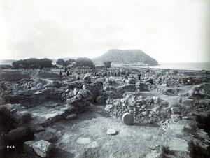 Part of a group of images from the British School at Athens excavations at Palaikastro, Crete in the 1902-1905. The original description in the SPHS negative register reads: "Palaikastro: a view".