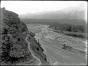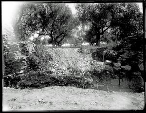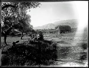 Part of the collection of images, 1906-1910, of the British School at Athens excavations at Sparta, Laconia. The original description in the SPHS register reads: "Sparta: the Eurotas below the Menelaion".