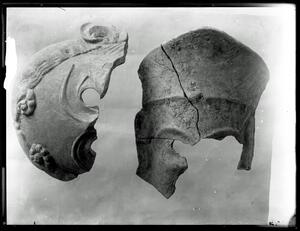 Part of the collection of images, 1906-1910, of the British School at Athens excavations at Sparta, Laconia. The original description in the SPHS register reads: "Sparta: Masks".