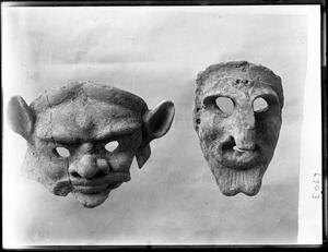 Part of the collection of images, 1906-1910, of the British School at Athens excavations at Sparta, Laconia. The original description in the SPHS register reads: "Sparta: T.C. masks".